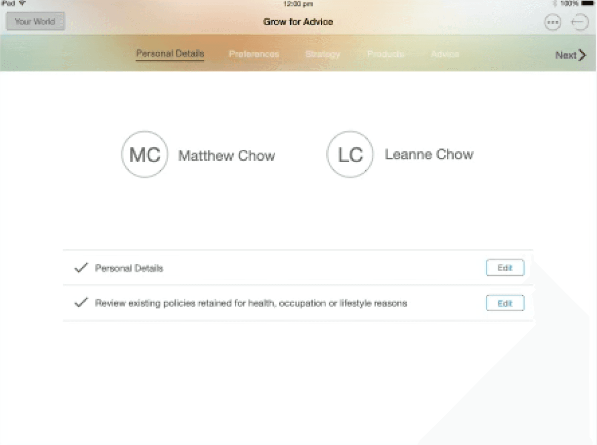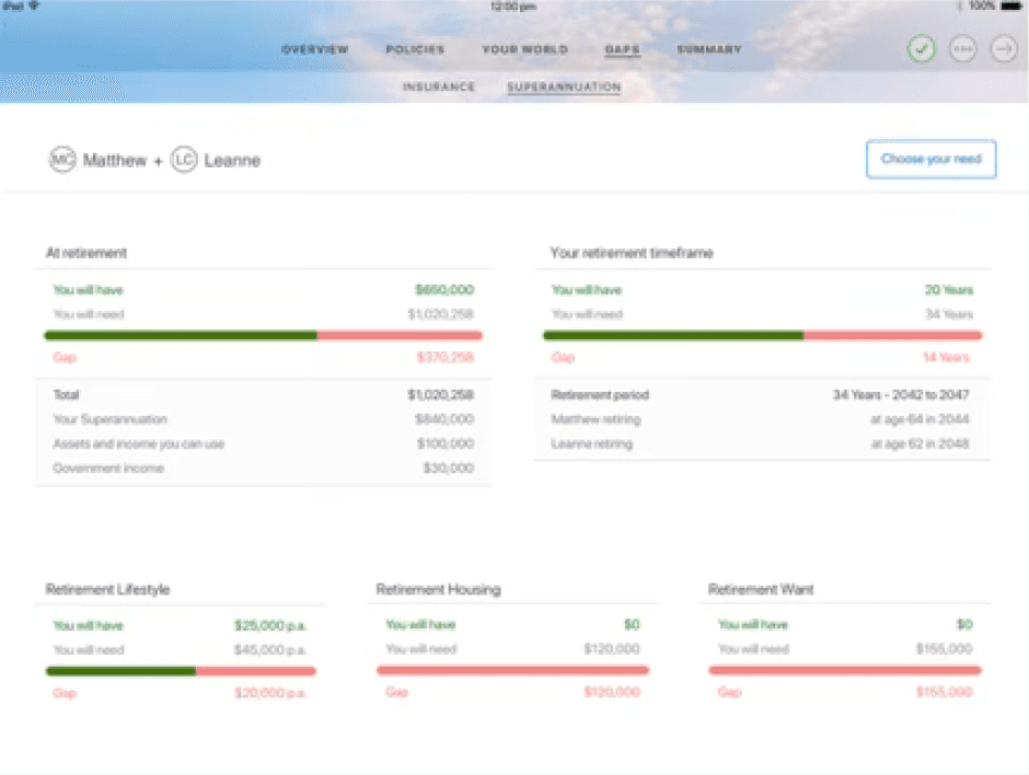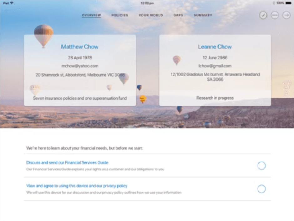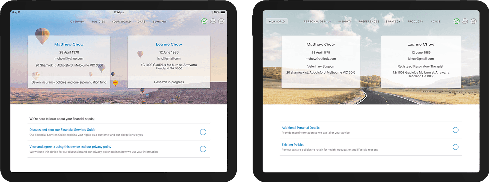 Digitised the paper-based Insurance and Superannuation advice process into an intuitive iPad app, enabling Financial Planners to work more efficiently by having more meaningful conversations with customers, and build greater trust throughout the advice journey.