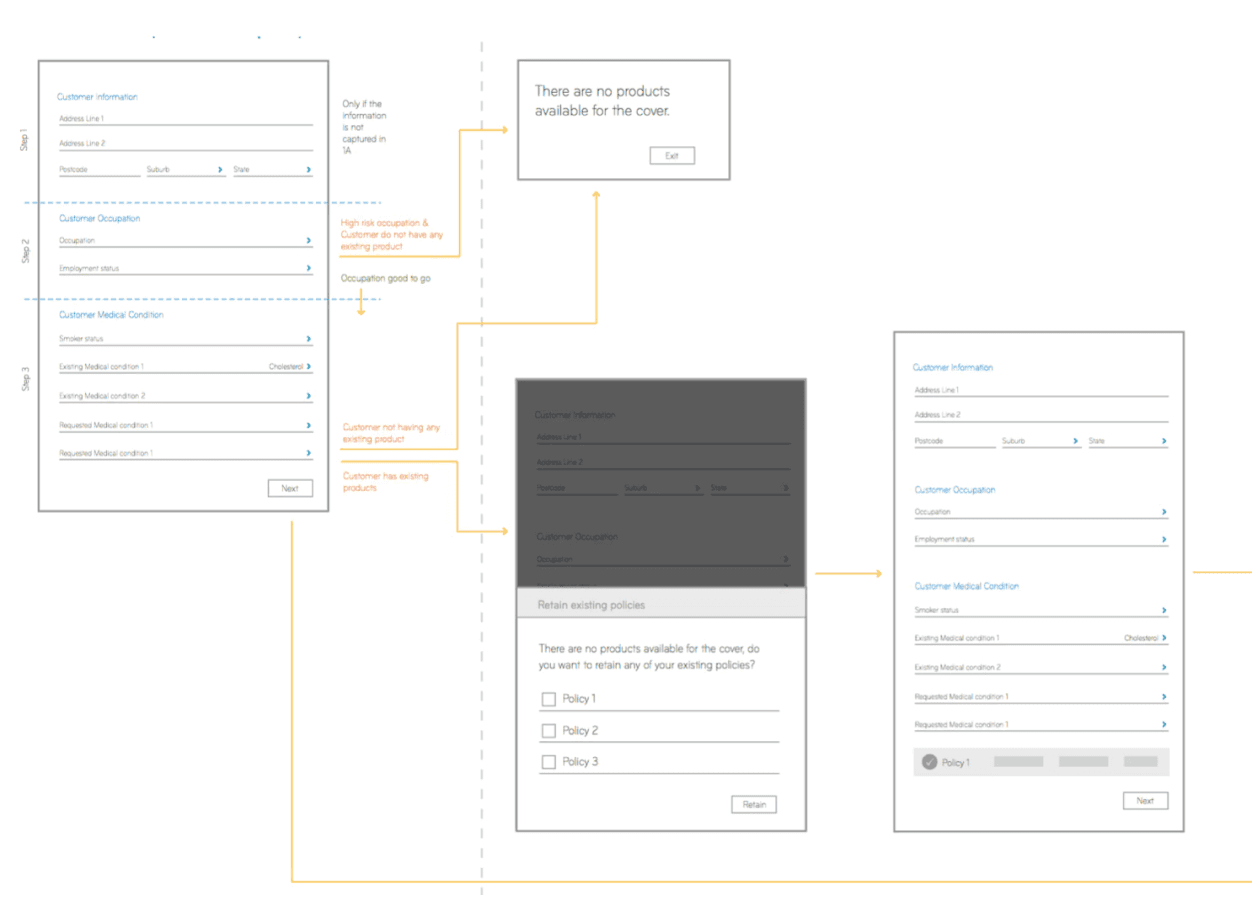 Wireframes were iterated through user testing, business input, and standardisation needs, helping communicate design intent clearly and enabling fast feedback from stakeholders.